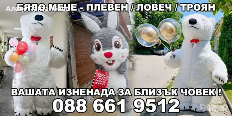 Бяло Мече и Зайче за вашата изненада Плевен Ловеч Троян → Обява 48141975