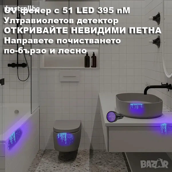 Разкрийте невидимото! С този изключително мощен UV фенер ще откриете замърсявания, които са невидими за невъоръжено око. Идеален за поддържане на безупречна хигиена в дома, офиса или навсякъде, където чистотата е от първостепенно значение.