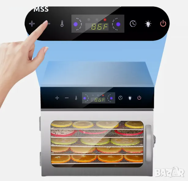 Чудесен за дехидратиране на плодове, билки, месо, риба и др.