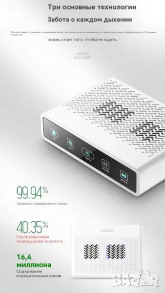 * Степен на дезинфекция и стерилизация на въздуха: 99.97%