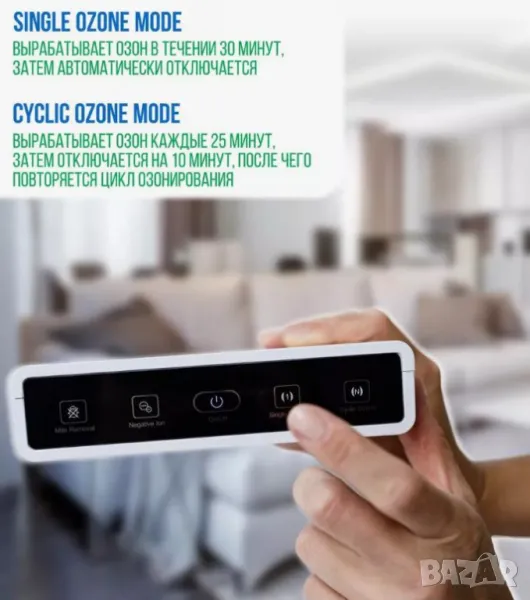 Внимание: Озон функциите се пускат, само когато няма хора и домашни любимци в стаята/офиса/кабинета/автомобила! След автоматичното изключване от 15 минути или ръчно изключване на цикличното пречистване, помещението се проветрява хубаво и е вече годно за нормално дишане!