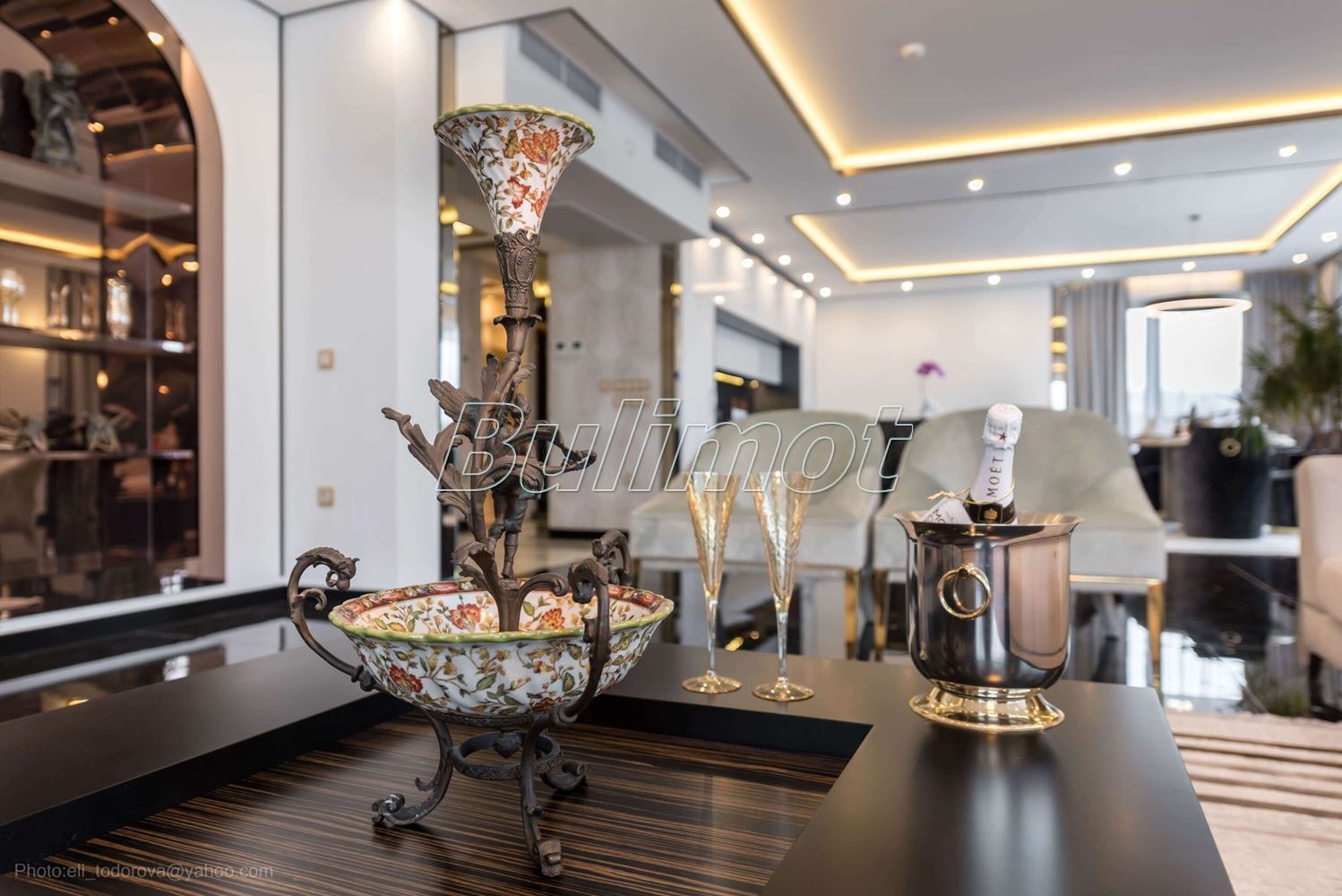 Имотът се предлага с дизайнерско луксозно обзавеждане и оборудване, подходящ за целогодишно живеене. Към апартамента има прилежаща изба.