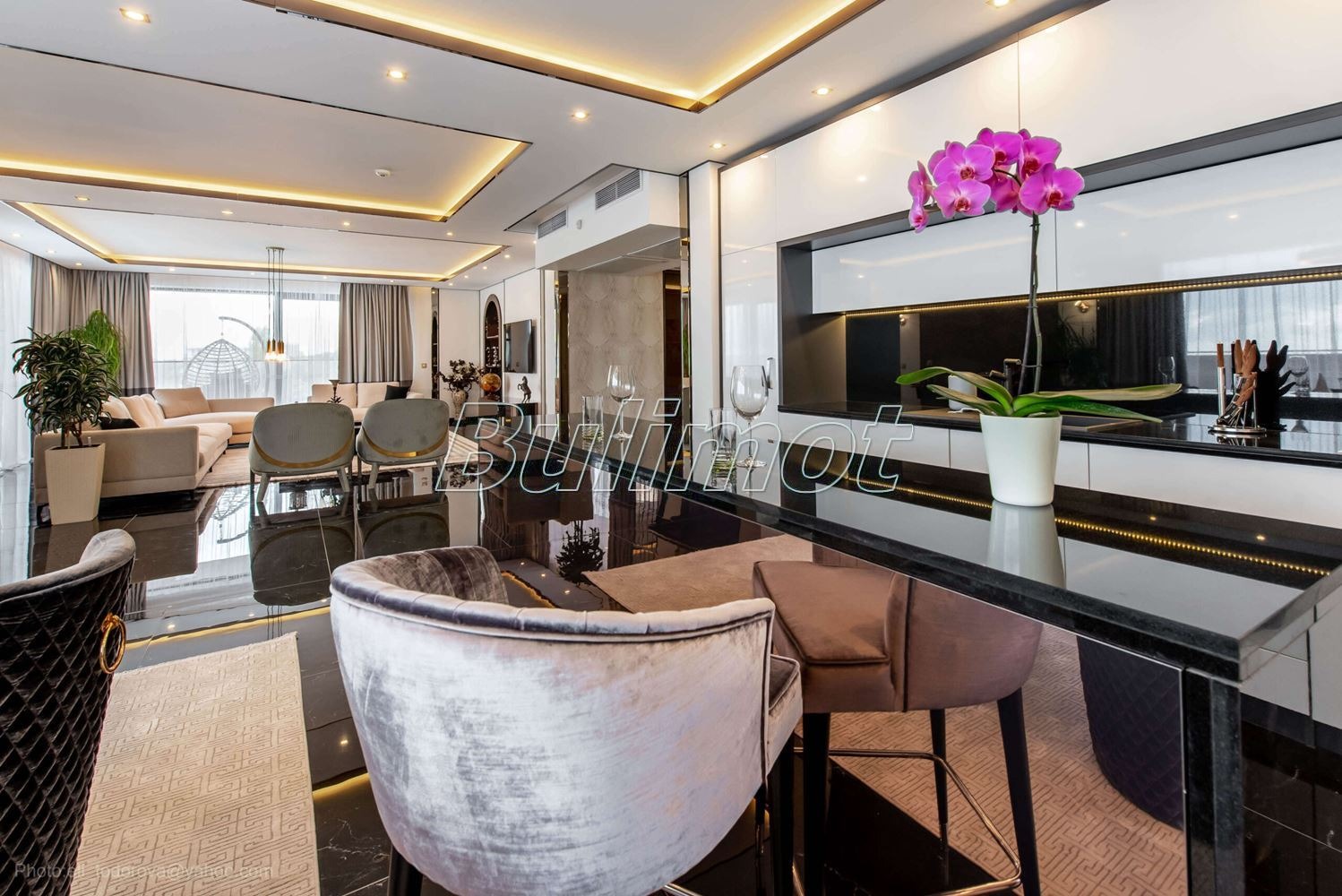 БУЛ ИМОТ предлага на Вашето внимание стилен тристаен апартамент с площ от 218 кв.м.(застроена площ 150 кв.м.), намиращ се на 4-ти жилищен етаж в луксозен затворен комплекс на самият морски бряг.
