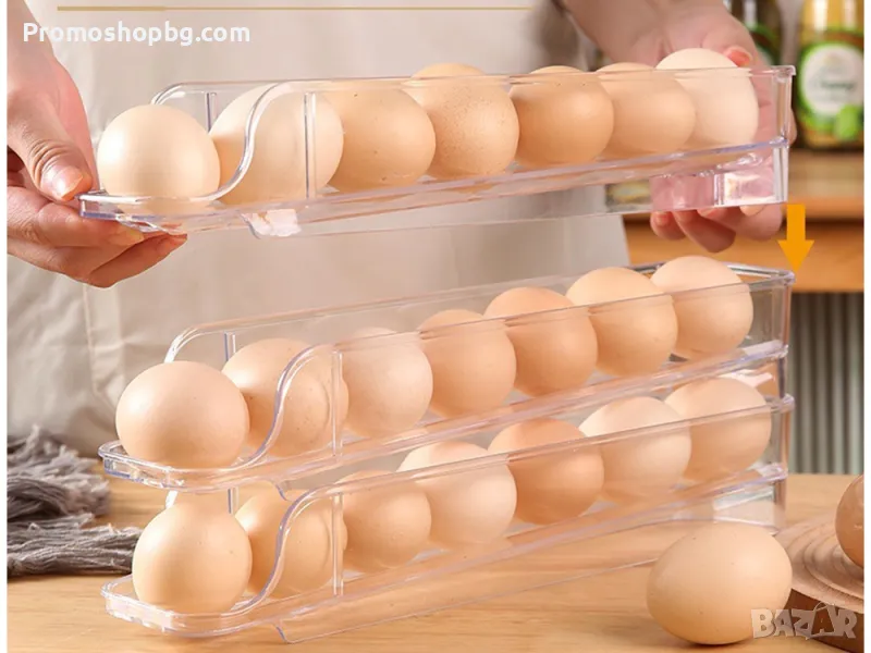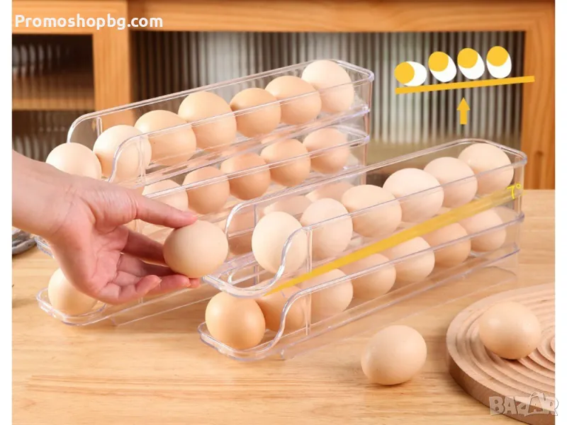 Освен това, яйцата автоматично се плъзгат надолу, когато вземете едно, което прави достъпа лесен и удобен.