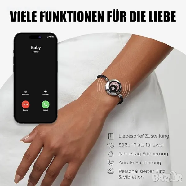 Гривни за двойки с вибрация и светлина за любов | Подаръци за връзка на дълги разстояния за приятелка Бижута за сдвояване с Bluetooth