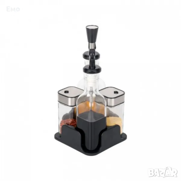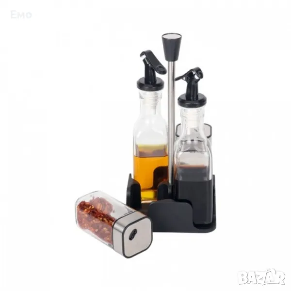 Изработен от висококачествени материали, този комплект е идеален за всеки дом или кухня, като предлага стилен и практичен начин за съхранение на подправки и масла.