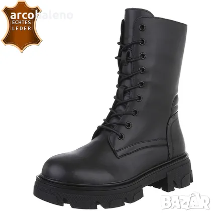 Дамски боти с връзки от естествена кожа, 2цвята
