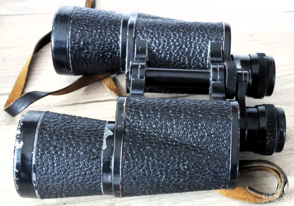 съветски бинокъл произведен от Загорски оптико-механически завод (ЗОМЗ), известен още като "капитански". Произведен през 1968г. и минал профилактика. Уредът е копие на Carl Zeiss Jena 7x50 Binoctem като не му отстъпва по почти нищо, знак за качество на световно ниво, най-добрата версия, нежълтеещ, леко топъл, кехлибарено МС покритие. Военната версия на 7x50 е бил широко използван във военно-морския флот заради идеалното съчетание между увеличение и светлосила, подходящ за употреба при лоши метеорологични условия, което го прави също така удобен и за астрономически наблюдения. Следи от употреба изразяващи се в загуба на боя по металните части, покритието на корпуса е съхранено, наочниците са цели, надписите четливи. Оптиката е здрава и чиста, фокусировката безпроблемна, като всичко това осигурява ясна и детайлна картина, уредът е и в колимация, т.е. няма двоен образ. Бинокълът е окомплектован с оригинален футляр и кожен презвратен ремък.