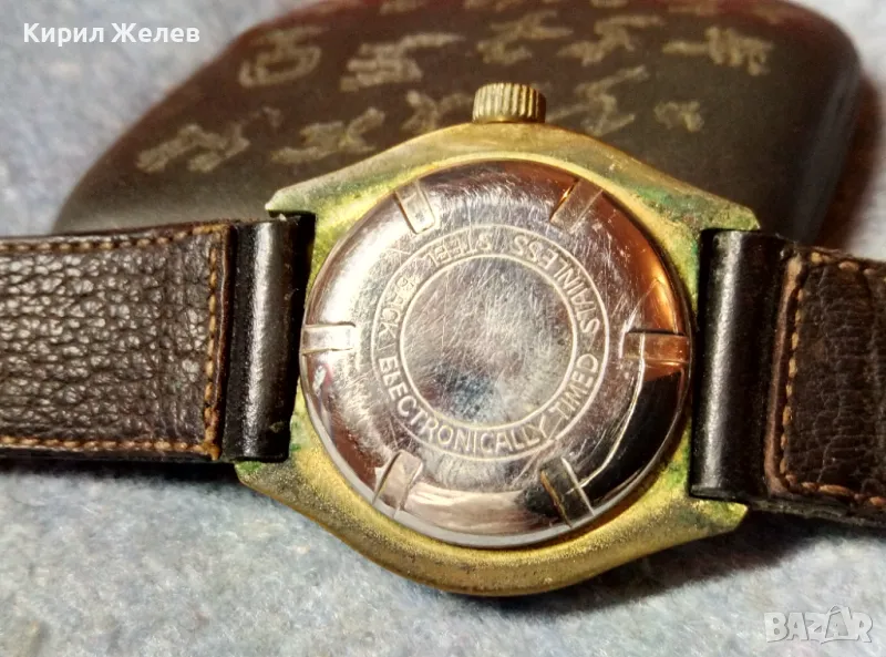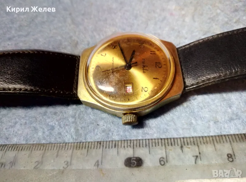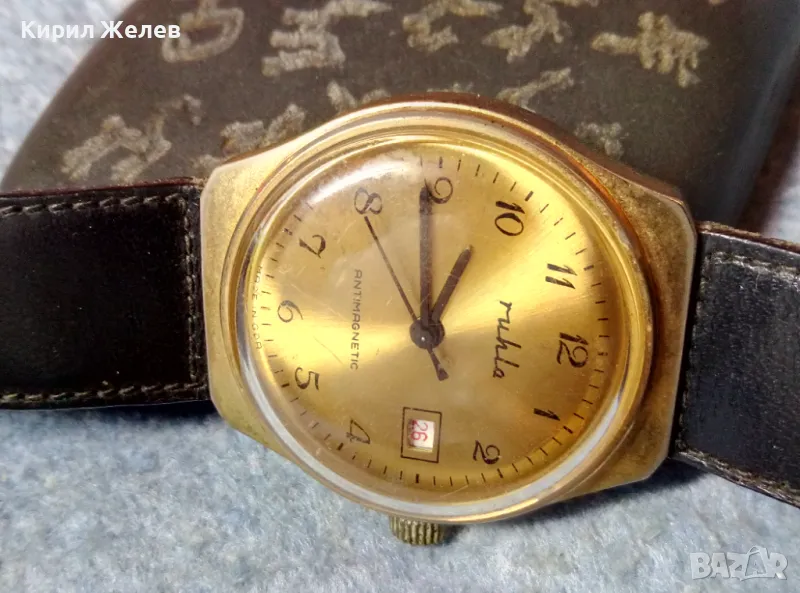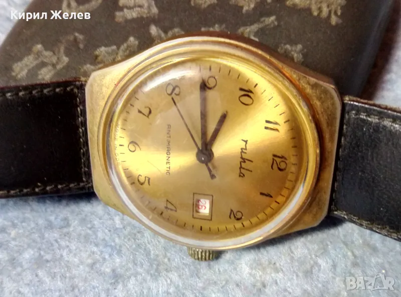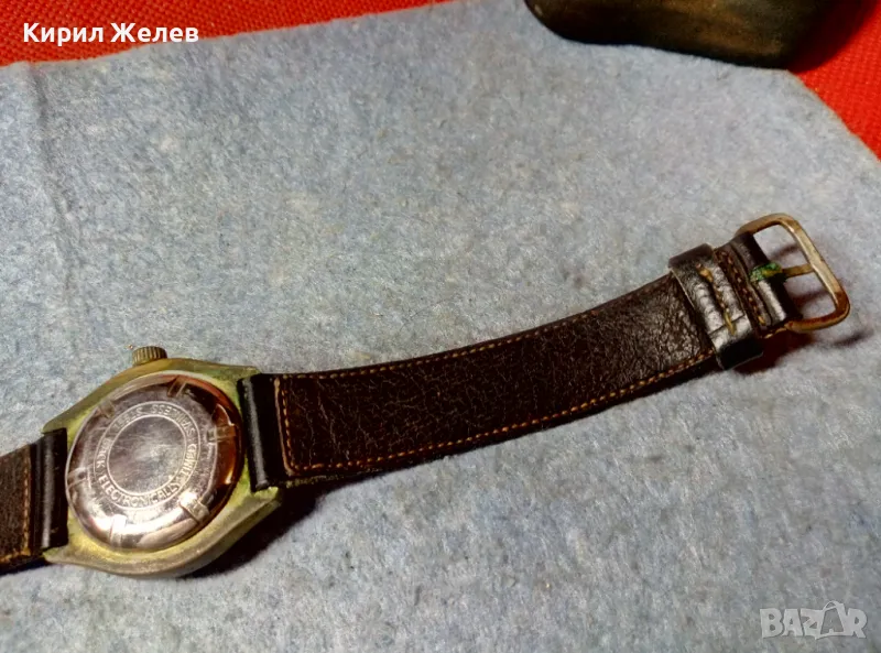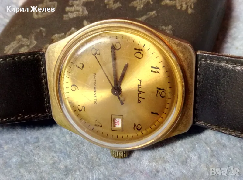 RUHLA ANTIMAGNETIC MADE in GDR Стар ПОЗЛАТЕН НЕМСКИ ЧАСОВНИК РУХЛА РАБОТИ КАИШКА Естеств. КОЖА 48690