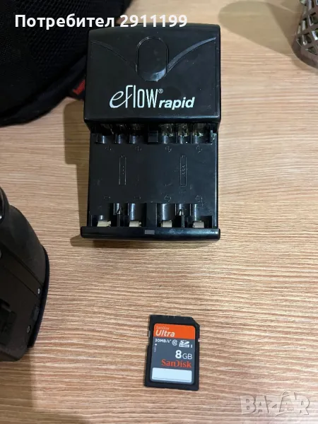 противоударна чанта, SD памет карта SanDisk Ultra 8GB и зарядно за батерии eFlow Rapid (позволява едновременно зареждане на