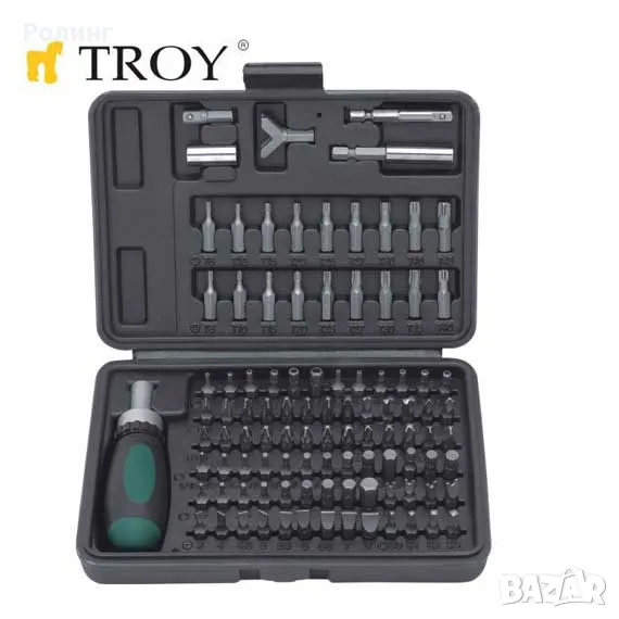 Комплект тресчота ръкохватка с накрайници 101 части / TROY 22309 /