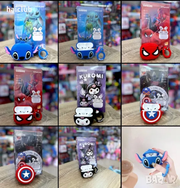 Стич слушалки безжични/Stitch earphones/Куроми,Спайдърмен слушалки