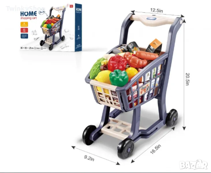 Комплект количка за пазаруване в супермаркет със светлинна музика → Обява 48151743
