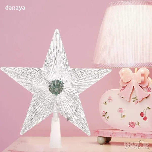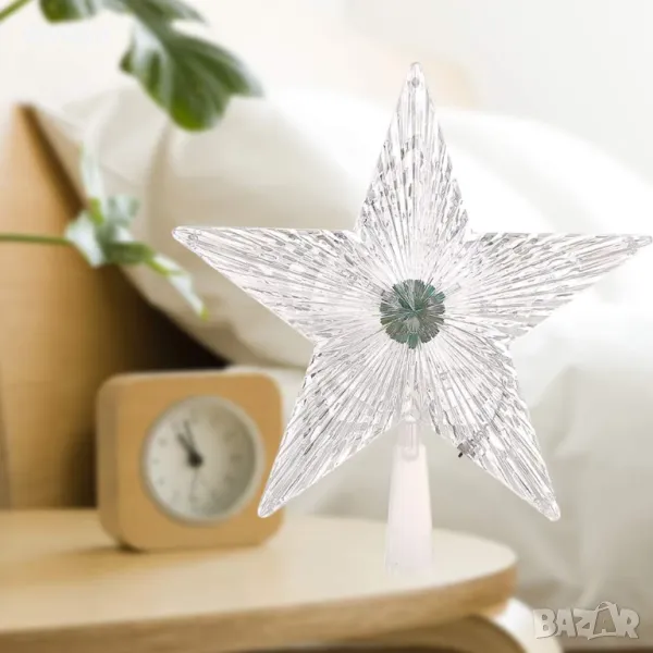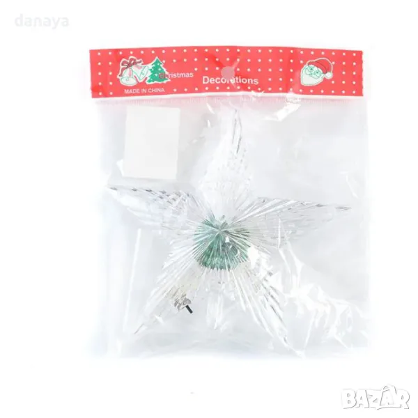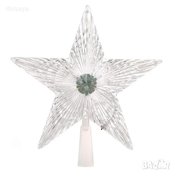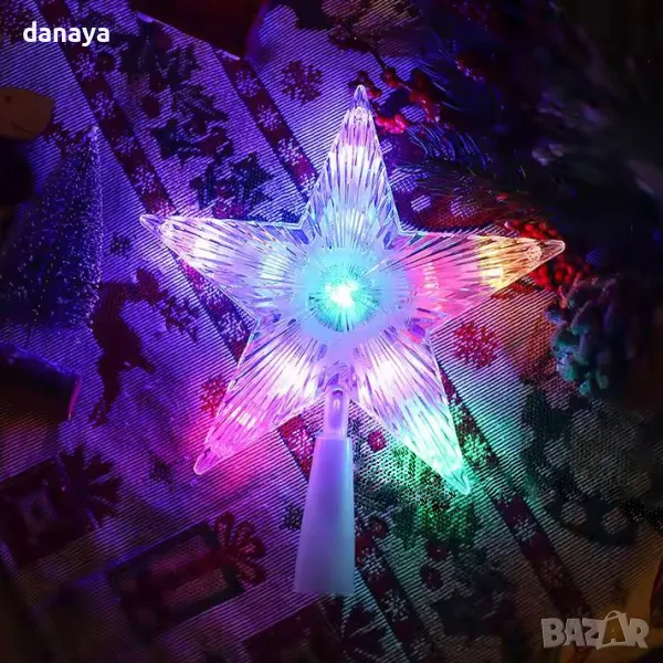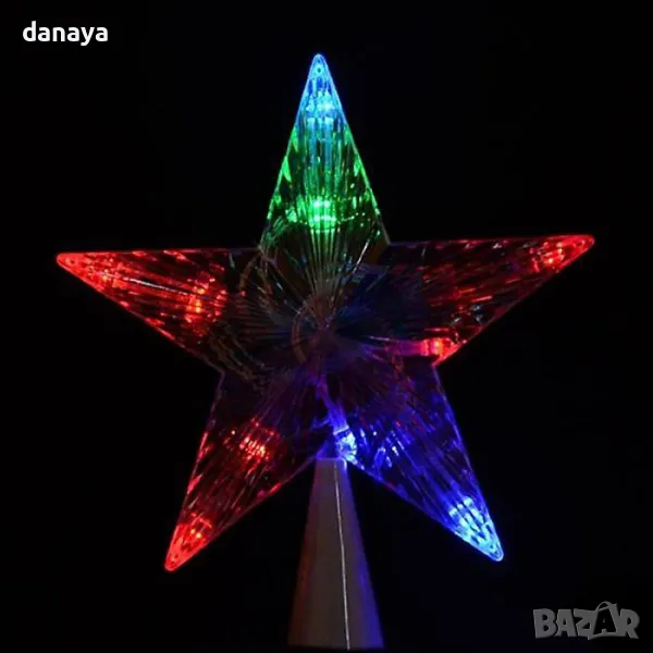 Връх за елха светеща коледна звезда в преливащи цветни светлини. Светеща коледна звезда, която създава страхотен ефект на коледната елха и звършеност на новогодишната украса. Звездата може да се постави и самостоятелно като светеща