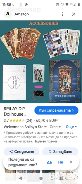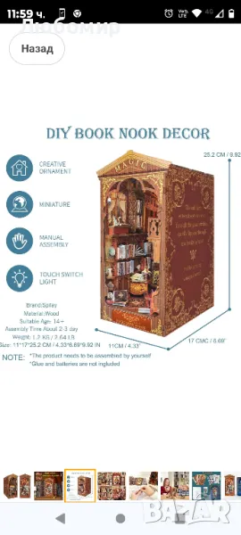 Комплект за сглобяване на миниатюрен кът за куклена къща SPILAY, 3D дървен пъзел, вложка за рафт за книги със сензорна светлина, книгодържатели, творчески комплект за създаване на модели за възрастни, жени, подарък за рожден ден (SQ06).Направи си сам комплект за кът за книги, комплект за куклена къща: Това е специален миниатюрен комплект книгоразделители с 3D диорама, ъгъл за книги и декорация. Микро дизайнът идва от реални сцени. Можете да си представите, че можете да се потопите в книжния кът. Миниатюрният свят може да създаде неограничени възможности в ограничено пространство, колко прекрасно е това.Изящна изработка и материал Комплектът ъглови поставки за книги е изработен от висококачествена дървесина, перфектно изрязана с лазер, с добре съвпадащи части, екологичен UV печат, равномерен ColorSpray. Всички материали са екологично чисти и безопасни, без грапавини и с високо качество. Моля, бъдете сигурни, че ще използвате. Този ъгъл за книга за къща за кукли „направи си сам“ трябва да бъде сглобен. Дори ако сте начинаещ, ръководството на английски може да ви обясни стъпка по стъпка, за да завършите миниатюрния комплект. Подходящо за възраст над 14 години.Уникален дизайн - Сензорен светодиод: Сензорът на тялото осветява книгоразделителя и създава пространство за четене с креативност. Когато се приближите, той автоматично ще освети нощната лампа вместо вас. Разстоянието на сензора на сензора за тяло е прибл. 0,5 ~ 3 метра. Когато някой дойде наблизо, светлината автоматично ще се включи за 1~2 минути и след това ще се изключи. Ако човекът не си тръгне, светва отново. Не само пестете електричество, но и направете вашата лавица за книги по-мечтателна и много удобна за игра.ПЕРФЕКТЕН ПОДАРЪК И КОЛЕКЦИОНЕРСКИ Творчески и значим подарък за Свети Валентин, Рожден ден и Коледа за вашите приятели, семейство и влюбени. Особено за тези, които обичат занаятите, миниатюрите и ръчната изработка, това е идеален подарък и колекционерска стойност. По-важното е, че може да популяризира техните практически умения и креативност, докато се наслаждава на забавлението „Направи си сам“. Когато завършите ъгъла за книги, повече от обикновена стойка за книги, изискан външен вид и светлини могат да се използват като украшение или произведение на изкуството.
