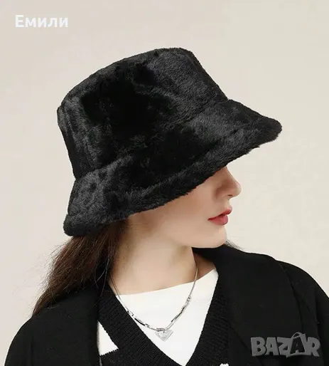Дамска пухкава шапка в черен цвят → Обява 48152583