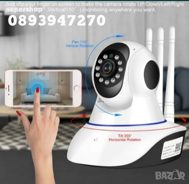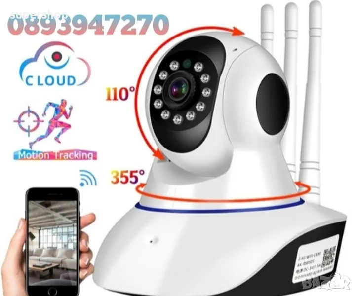 Вътрешна Камера, Безжична Wi-fi Камера с 5 антени за Видеонаблюдение от всяка точка на земята през мобилен телефон.
