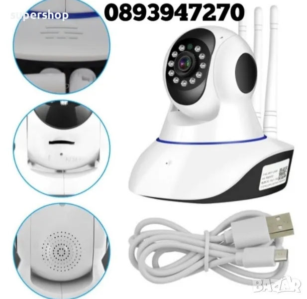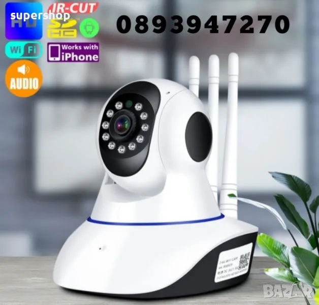 Видеонаблюдение - IP мрежова Камера безжична с 5 антени с двупосочен интерком и нощно виждане, вътрешен монтаж