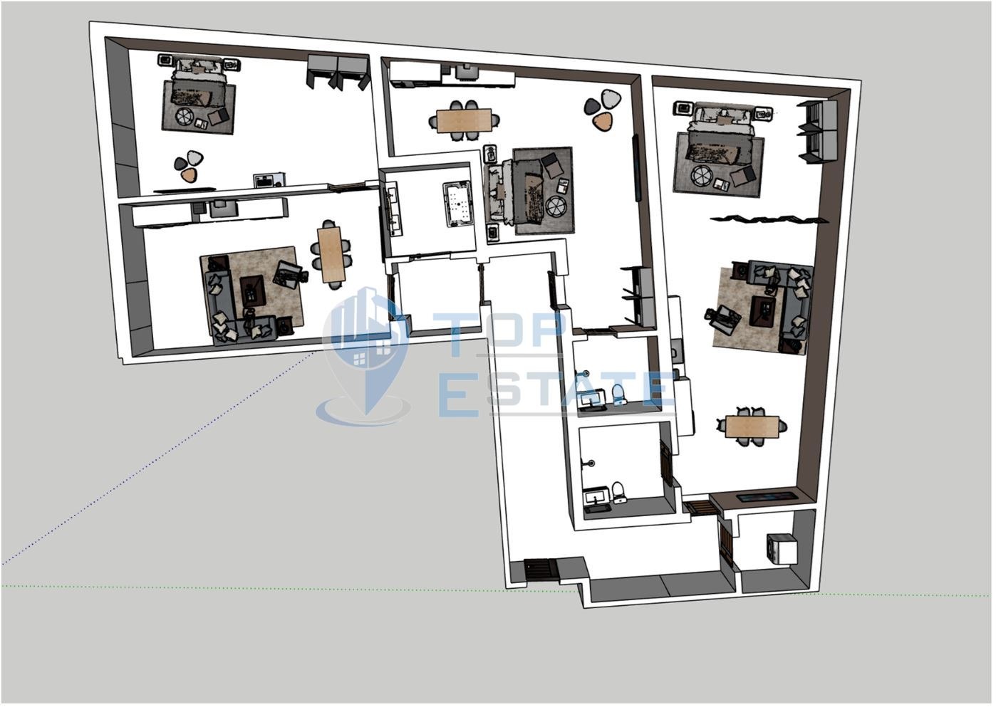 Топ Естейт Недвижими имоти Ви предлага четиристаен апартамент в квартал Бузлуджа, гр. Велико Търново. Апартамента е разположен на втори жилищен етаж в ново построена жилищна сграда. Общата площ на имота е 172,65 кв.м, като чистата жилищна площ е 149,71 кв.м, разпределени по следния начин коридор, склад, дневна с кухненски бокс, три спални, три бани с тоалетни. Жилището има блиндирани входни врати, шесткамерна PVC дограма-златен дъб, външна топлоизолация и луксозно изпълнение на общите части. Номер на оферта: 2947. We speak English and German.