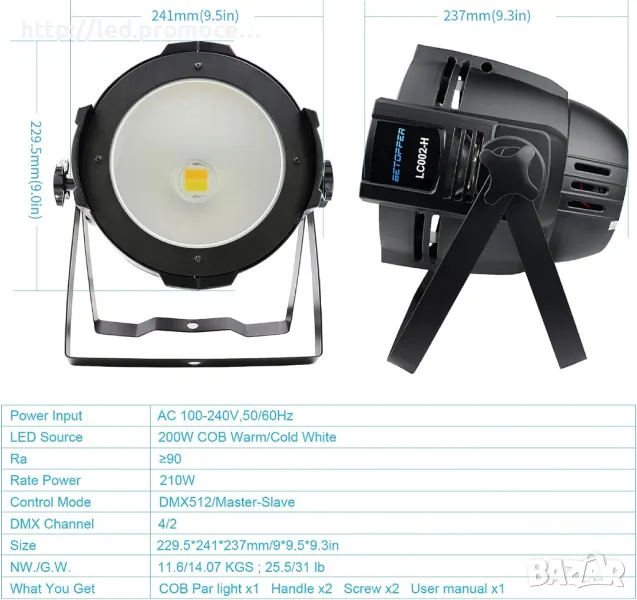 ♬❤【COB/100W източник на светлина】Използването на COB светлина прави тази сценична светлина по-стабилна, по-добро разсейване на топлината, по-ефективна и прави цвета на светлината чист и равномерен