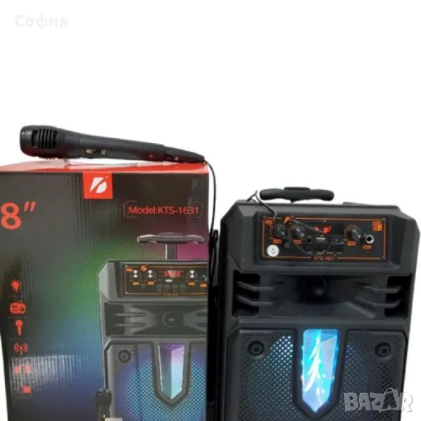 Мощна безжична тонколона 8'' с дистанционно управление и микрофон KTS-1631 → Обява 48153362