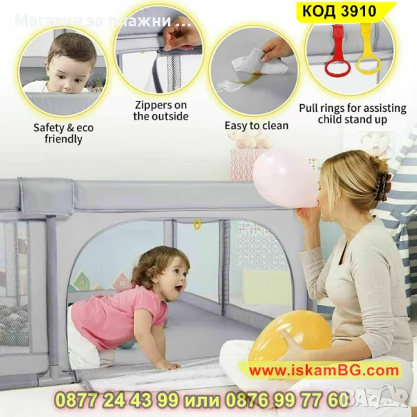 Насладете се на спокойствие и увереност, като предоставите на вашето бебе безопасно и забавно място за игра с нашата голяма кошара. Изработена с високи стандарти на качество и с внимание към детайлите, тази кошара е идеалният избор за вашето дете. Нека вашето бебе израства в здраво и щастливо околие!