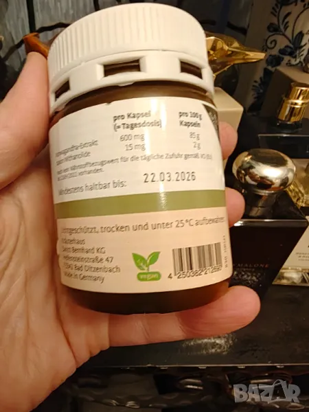 Оригинални от Германия в кутията са 60 но я отворих само за да добавя още 7 от кутията с която приключих лечението си .Ашвагандата се ползва за нервни напрежение и безсъние Пие се по 1 или 2 капсули .Крайна цена без бартери.