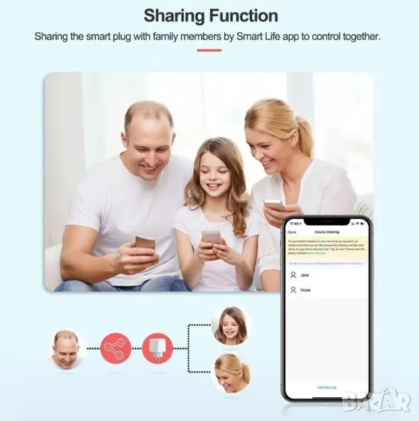 - да споделяте управлението на Wi-Fi с Вашето семейство, така че да може да наблюдавате и управлявате заедно всички контакти и свързани уреди към тях.