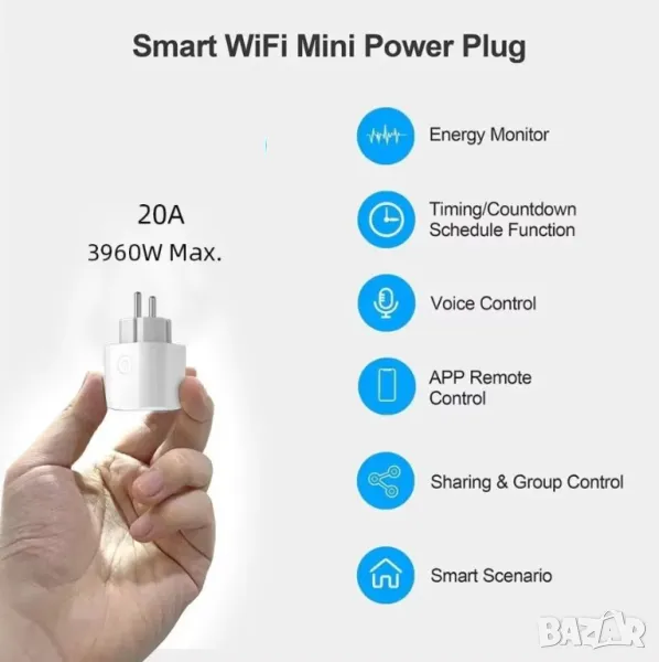 Wi-Fi Smart контакт 20А с вграден електромер и пълен контрол от приложение на телефона. Може да съставяте график от приложенията кога да се включва и изключва, по дни и по точно време. По всяко време имате контрол върху него и наблюдавате колко енергия се изразходва.