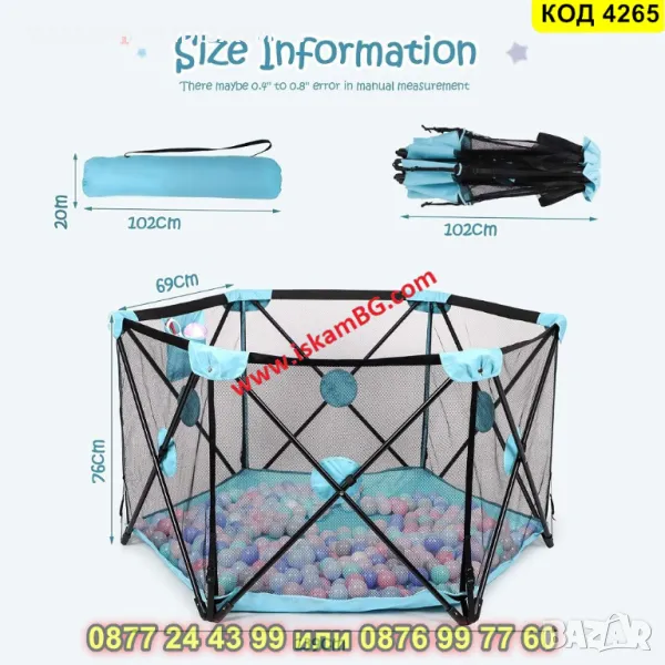 1 брой мрежеста шестоъгълна кошара за игра за деца