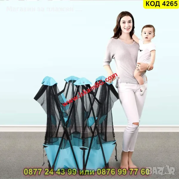 Стените на кошарата са изработени от прозрачен и ефирен материал, който позволява правилен въздушен поток и позволява непрекъснато наблюдение на детето.