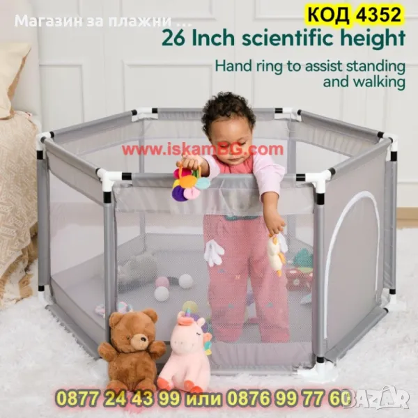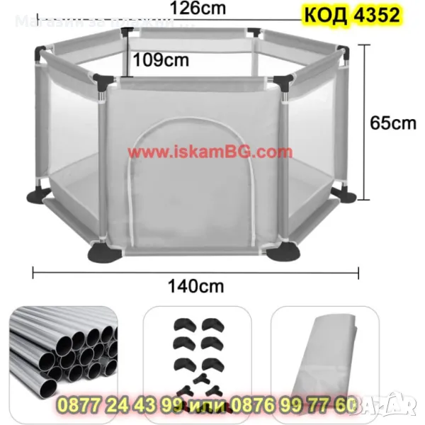 Лесно сглобяема шестоъгълна детска кошара за игра с размери 125х110х65 см - КОД 4352