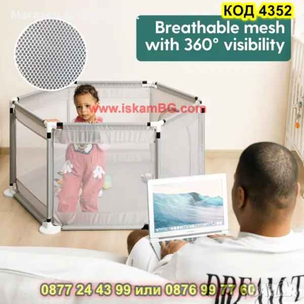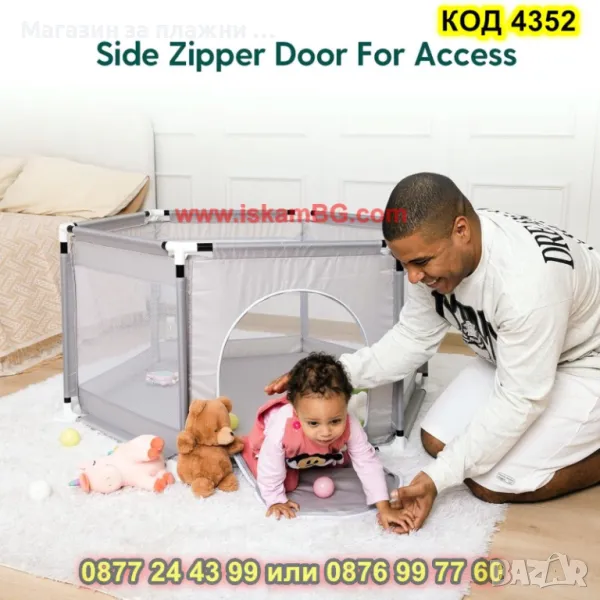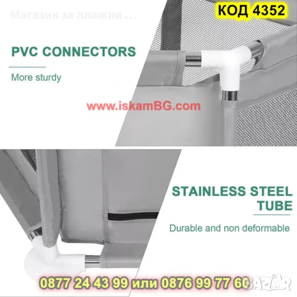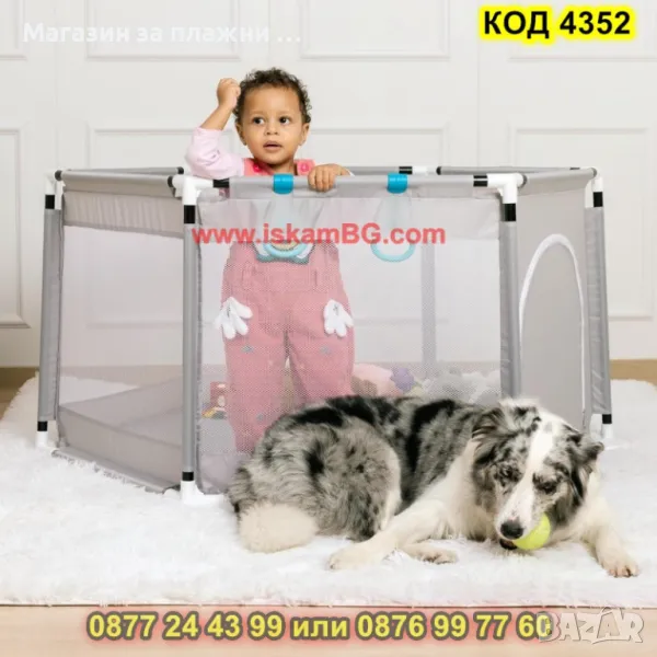 Безопасна кошара, която ще бъде уютно място за игри на всяко дете. Кошарата осигурява забавно, удобно и безопасно място за забавление на вашият малчуган. Предимства на кошарата за игра: Пет от страните имат мрежа, която Ви позволява да виждате какво прави детето в кошарата, а също така осигурява правилна циркулация на въздуха. Вратата на кошарата е с троен цип за лесно влизане и излизане. Лесно сглобяване - отнема само няколко минути - просто свържете всички тръби заедно и сложете плата на кошарата. Както сглобяването, така и разглобяването са лесни и не изискват твърде много време или специални умения. Кошарата е изработена от издръжлив плат, поставен върху тръби от неръждаема стомана, благодарение на които стабилността и дълготрайната употреба са гарантирани. Кошарата има широки основи, които я правят неподвижна и стабилна. Всички части са допълнително заоблени, което намалява риска от нараняване. Когато е сгъната, кошарата заема малко място, което я прави удобна за съхранение.