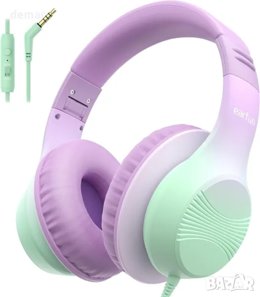 Детски слушалки EarFun с кабел, сгъваеми слушалки с микрофони, 85/94dBA безопасно ограничение