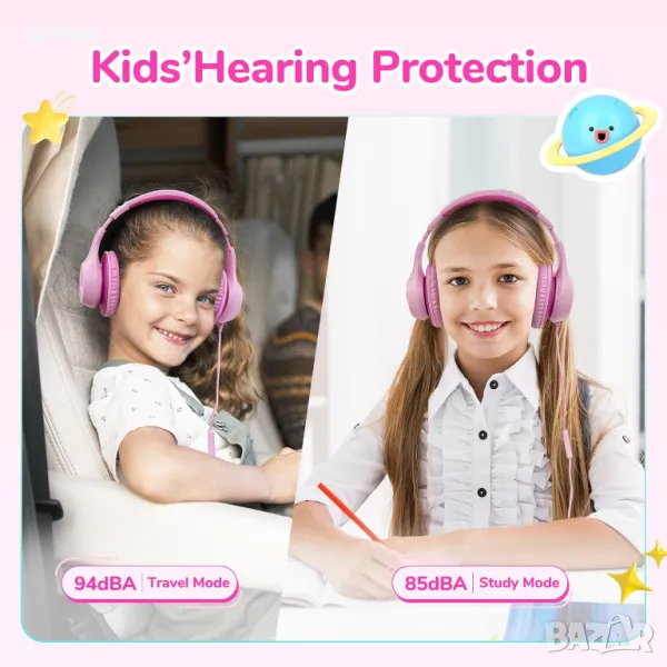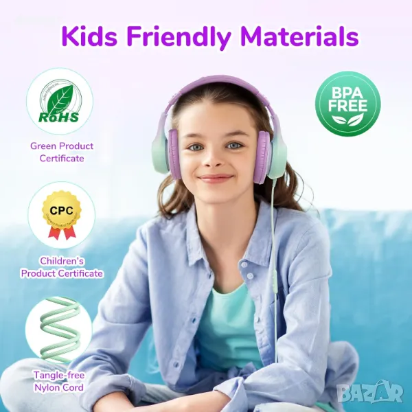 Създадени за деца с мисъл за безопасността, тези слушалки разполагат с ограничение на силата на звука 85/94dBA, за да предпазят слуха, като същевременно осигуряват балансирано качество на звука. Вграденият HD микрофон осигурява ясна комуникация по време на разговори и онлайн класове, докато 40-милиметровите драйвери осигуряват завладяващ Hi-Fi стерео звук с дълбок бас и жизнена яснота. Меките подложки за уши и регулируемата лента за глава осигуряват комфорт през целия ден, а издръжливият, сгъваем дизайн, изработен от подходящи за деца материали, ги прави идеални за ежедневна употреба у дома, в училище или в движение.