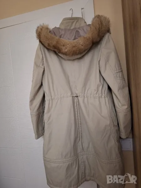 Качествена ватирана подплата, качулка с естествен пух,който се сваля.Шубата се пере в пералня. Има възможност за промяна на талията.Вижте всички снимки.Хубв бежов цвят. Материал 100% памук,подплата вискоза и полиестер 50/50.