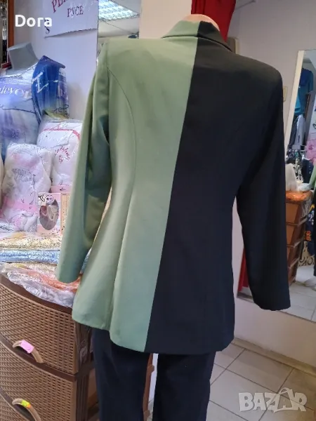 Дамско сако двуцветно ,кройка редингод,половин ревер шал яка,половин ревер обикновен.Сакото е с тънка подплата.Много елегантно стои,създава стройна фигура на дамата.Може да откриете в магазина на фирмата във Варна ул.Др.Пискюлиев ном.6.Заповядайте.