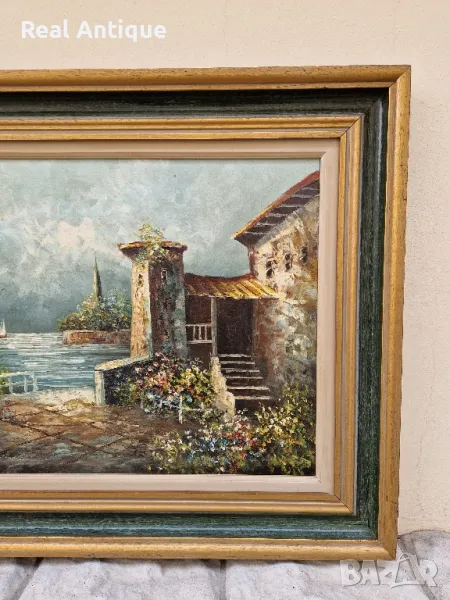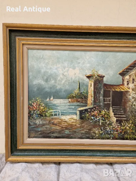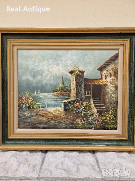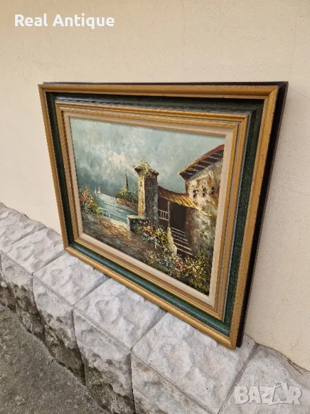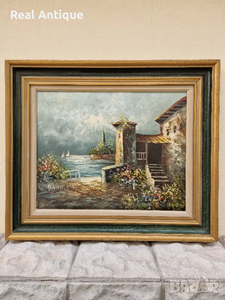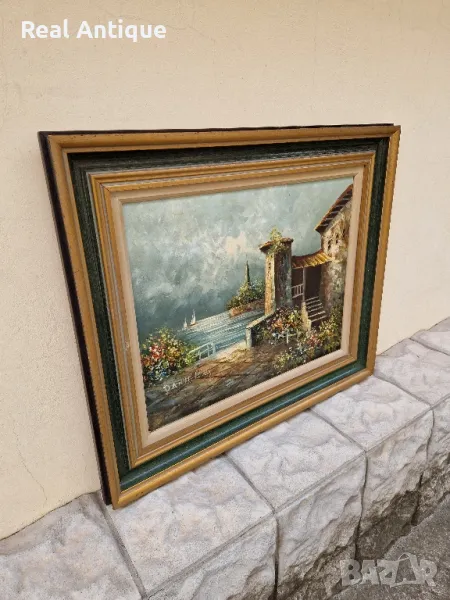 Продавам превъзходна много добра антикварна авторска картина масло върху платно в много добро състояние с красива дървена рамка. Размери 74 см на 64 см. Прекрасно допълнение към интериора на Вашия дом офис вила ресторант хотел. Подходяща и за подарък. Работя с всички куриери. Отговарям бързо.