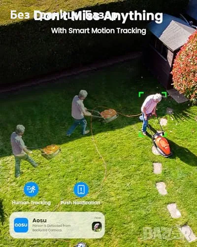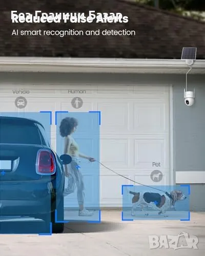 AI разпознаване: Засича хора, превозни средства и домашни любимци; интелигентно уведомяване.