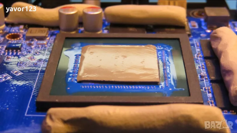 Решението с Putty: Тъй като е мек като пластилин, той се разплесква точно толкова, колкото е нужно. Ако луфтът е 0.3мм, той става 0.3мм. Ако е 2.0мм, запълва и тях. Той гарантира, че охладителят винаги ще легне перфектно върху най-важния компонент – ядрото.