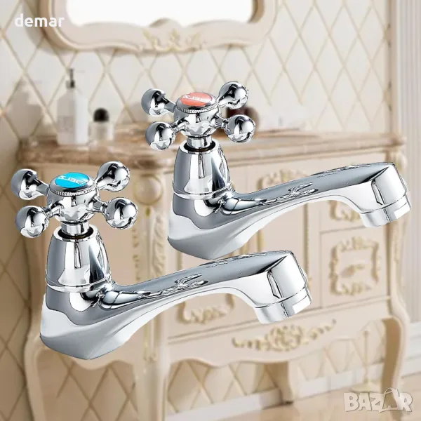 BELZ Винтидж хромиран смесител за баня, кранове за топла и студена вода