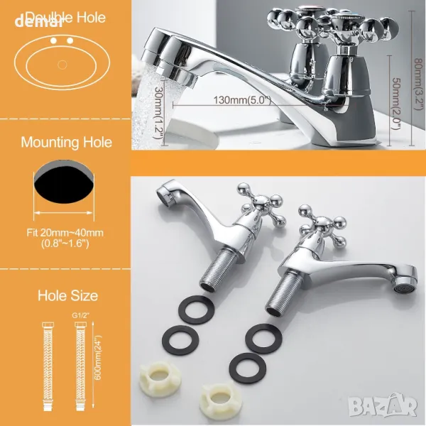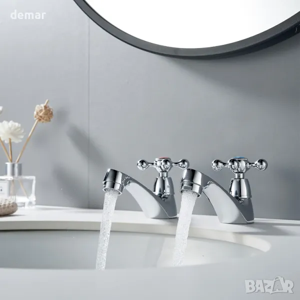 Вечен кран с двоен лост с класически топли и студени контроли на напречна глава, включващ издръжливо хромирано покритие, което е устойчиво на корозия, потъмняване и петна, като същевременно запазва своя блясък. Съчетавайки традиционен британски стил с елегантна модерна нотка, той подобрява както съвременните, така и класическите пространства. Проектиран за гъвкавост, той пасва на стандартни 1/2” водопроводни връзки, което го прави подходящ за различни настройки за баня. Инсталирането е безпроблемно с включен хардуер и инструкции, предлагайки лесен начин да надстроите банята си с елегантност и практичност.