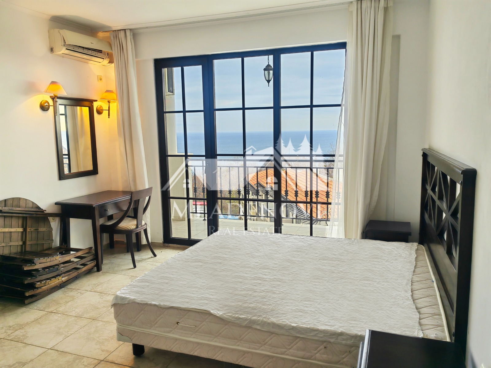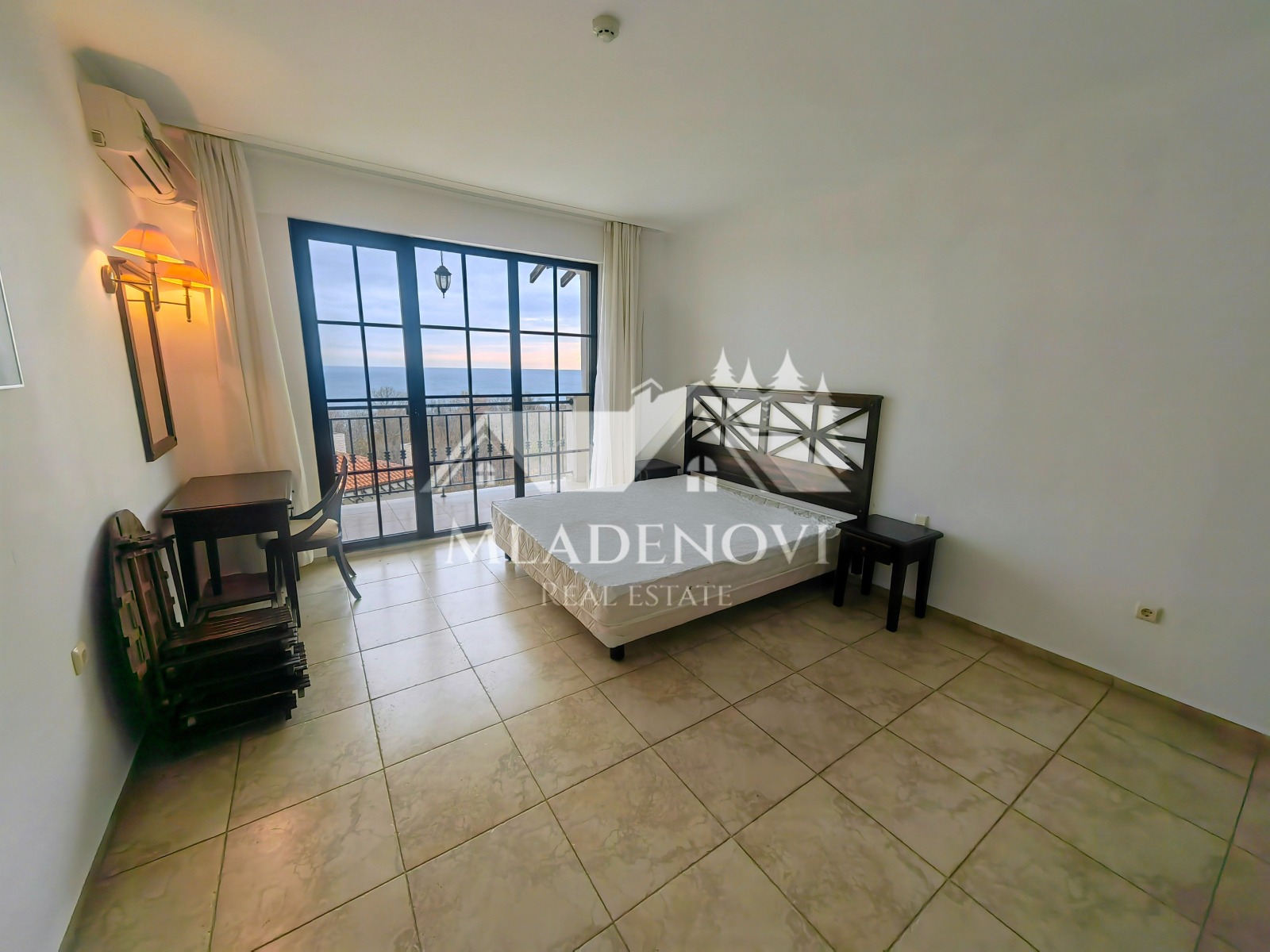 БЕЗ АНАЛОГ НА ПАЗАРА! Имаме удоволствието да Ви предложим за продажба просторен дтристаен апартамент с ФРОНТАЛНА ГЛЕДКА МОРЕ, в луксозния 4-звезден комплекс 'The Cliff Obzor'. Комплексът се намира в началото на града и е разположен върху скалите. От него се открива прекрасен изглед към морето и към залива на гр. Обзор. Плажната ивица е в непосредствена близост, до която се достига по дървени стъпала. Жилището се състои от просторна всекидневна с кухненски тракт,самостоятелна голяма спалня, широка тераса,обща за двете стаи,от която се разкрива уникална панорамна гледка към морето и впечатляващи зелени площи, междинен коридор, втора по-малка спалня със санитарен възел, предверие и голяма баня с вана и тоалетна. Имотът е подходящ, както за отдаване под наем, така и за лично ползване. Продава се с цялото налично обзавеждане и оборудване. Таксата проддръжка е 12,90 Евро без ДДС на кв.м. годишно.