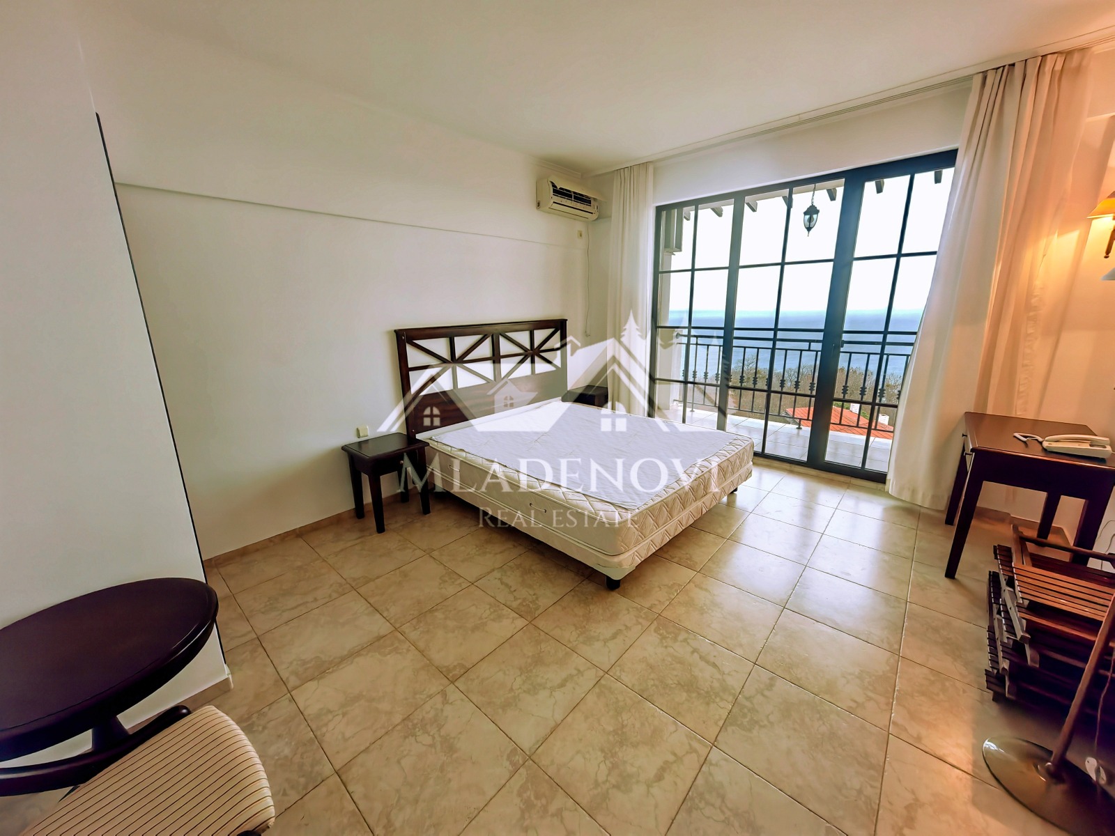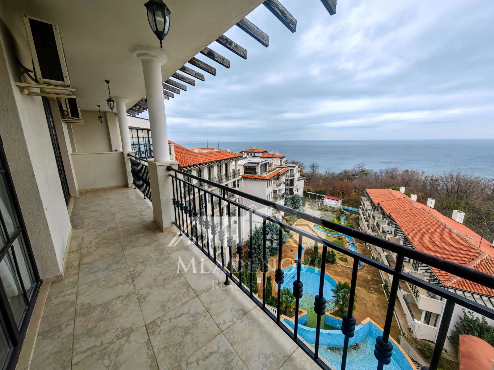Имаме удоволствието да Ви предложим за продажба просторен тристаен апартамент с ФРОНТАЛНА ГЛЕДКА МОРЕ, в луксозния 4-звезден комплекс 'The Cliff Obzor'. Комплексът се намира в началото на града и е разположен върху скалите. От него се открива прекрасен изглед към морето и към залива на гр. Обзор. Плажната ивица е в непосредствена близост, до която се достига по дървени стъпала. Жилището се състои от просторна всекидневна с кухненски кът,самостоятелна голяма спалня, широка тераса,обща за двете стаи,от която се разкрива уникална панорамна гледка към морето и впечатляващи зелени площи, междинен коридор, втора по-малка спалня със санитарен възел, предверие и голяма баня с вана и тоалетна. Имотът е подходящ, както за отдаване под наем, така и за лично ползване. Продава се с цялото налично обзавеждане и оборудване. Таксата поддръжка е 12,90 Евро без ДДС на кв.м. годишно.