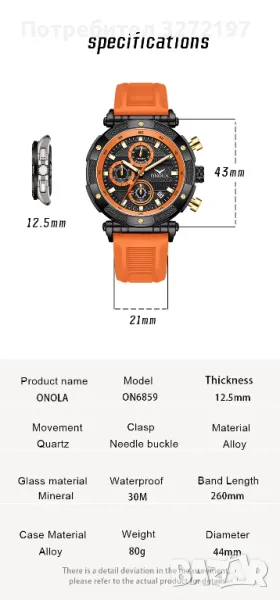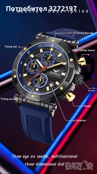 ONOLA кварцов часовник,силиконова каишка, светещи стрелки,дата, водоустойчивост 3ATM → Обява 48158635