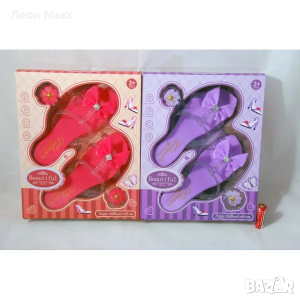 Пантофките са с панделки, а цветята могат да се сменят последователно в зависимост от съвпадението на тоалета или предпочитанията на малката принцеса.