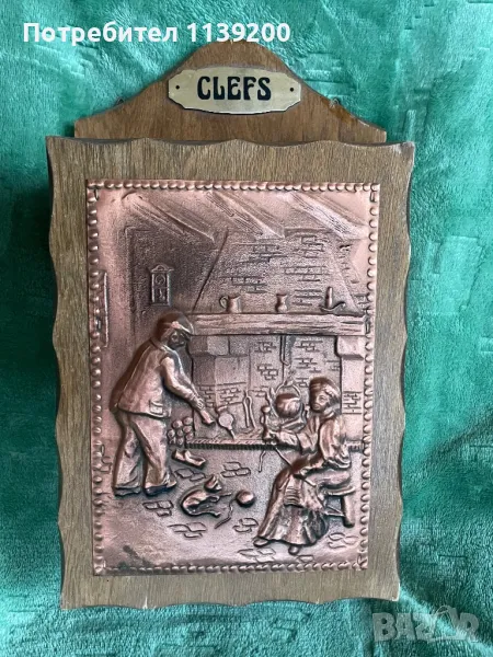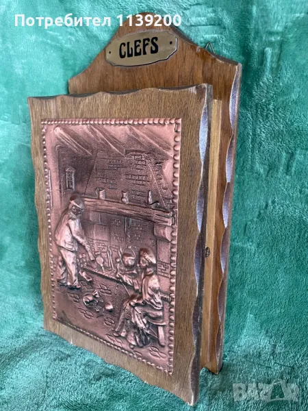 Френска винтидж кутия за ключове огнище мед дърво масив → Обява 48160360