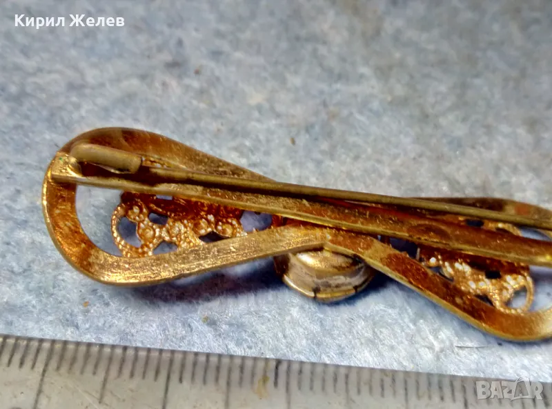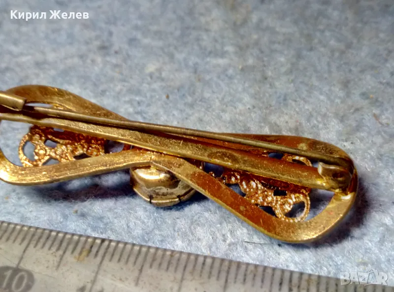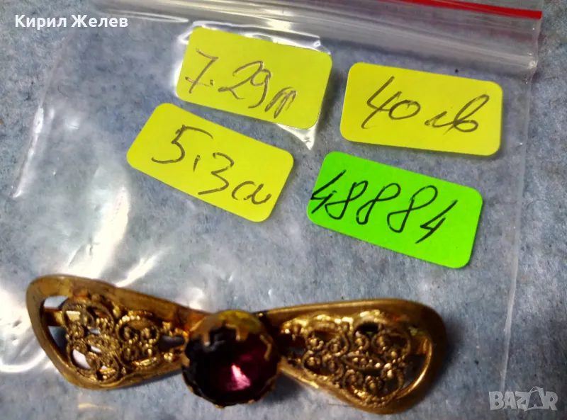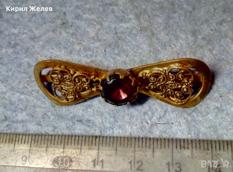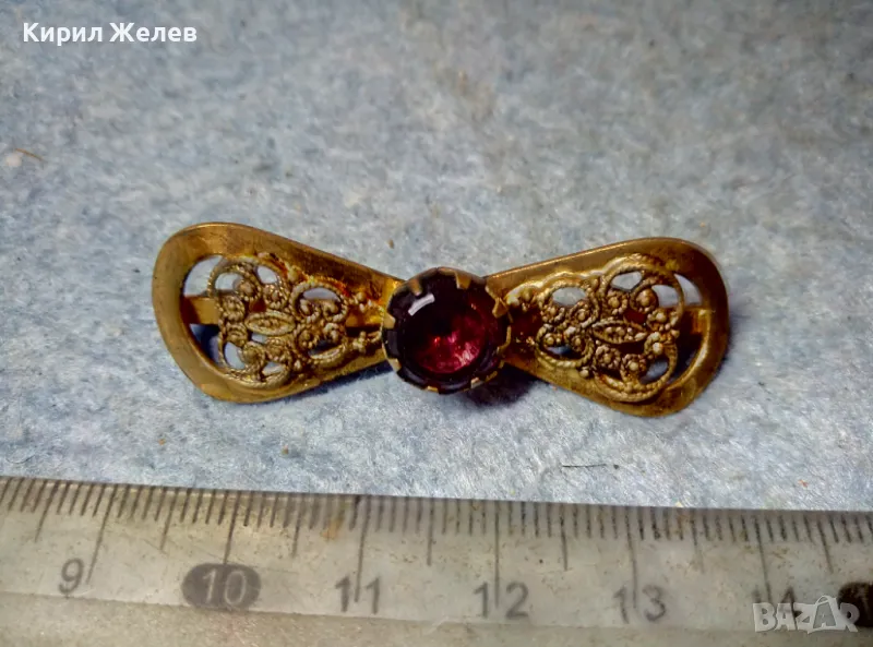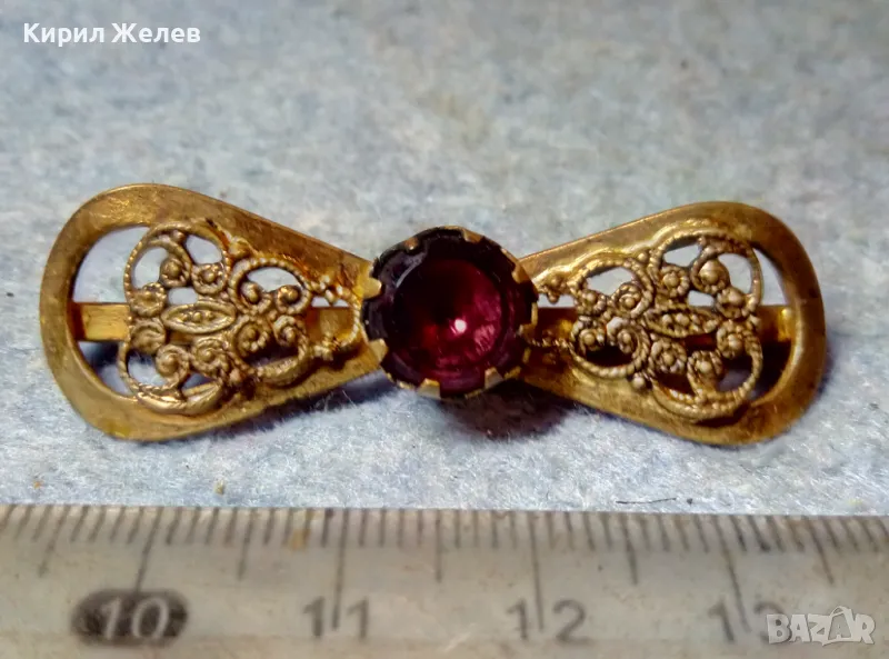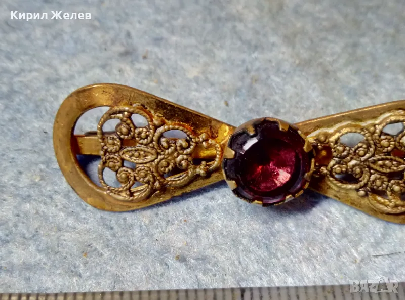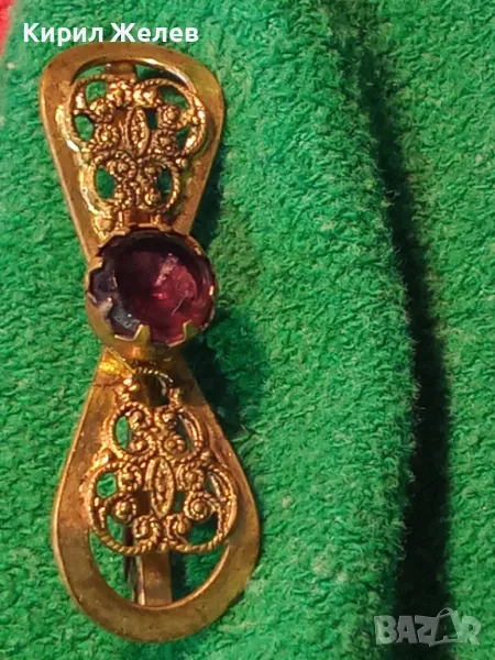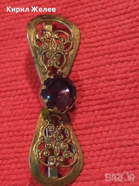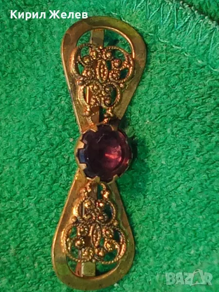 СТАРИННА ФИЛИГРАННА БРОНЗОВА СКЪПОЦЕННА БРОШКА - ПАНДЕЛКА с ФАСЕТИРАН АМЕТИСТ 48884 → Обява 48160523