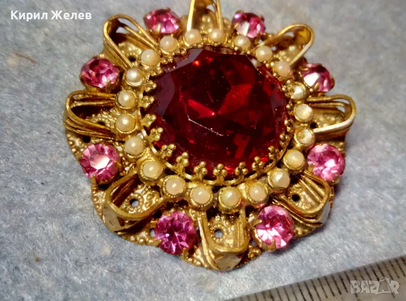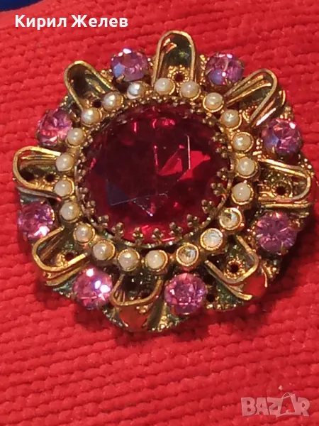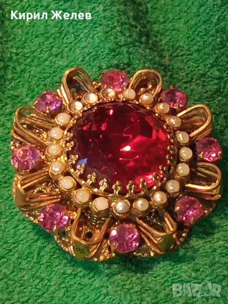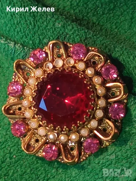 СТАРИННА СКЪПОЦЕННА ФЛОРАЛНА БРОНЗОВА БРОШКА - ЦВЕТЕ с ГОЛЯМ ШЛИФОВАН ГРАНАТ и АМЕТИСТИ 47965 → Обява 48160679