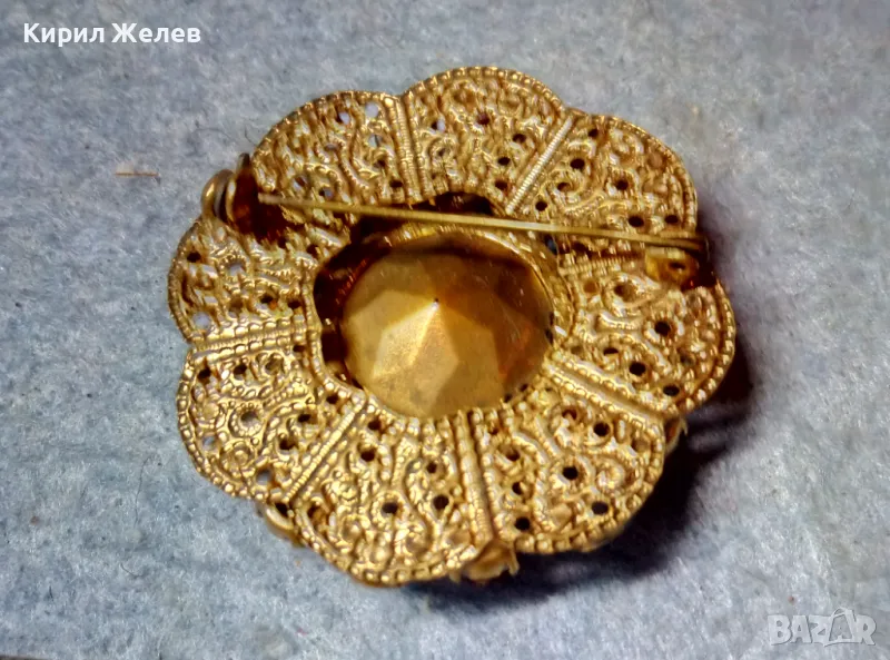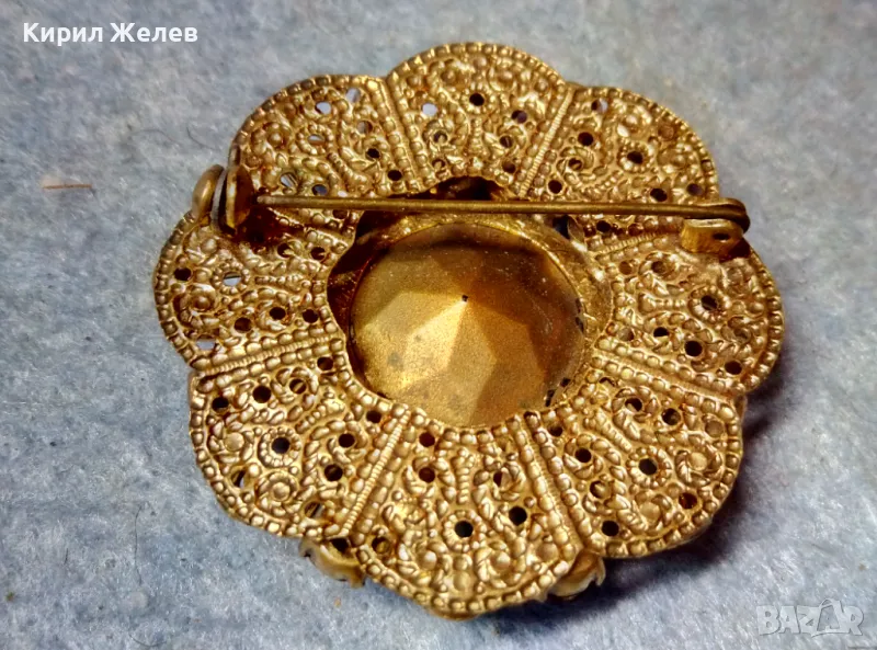 СТАРИННА СКЪПОЦЕННА ФЛОРАЛНА БРОНЗОВА БРОШКА - ЦВЕТЕ с ГОЛЯМ ШЛИФОВАН ГРАНАТ и АМЕТИСТИ 47965